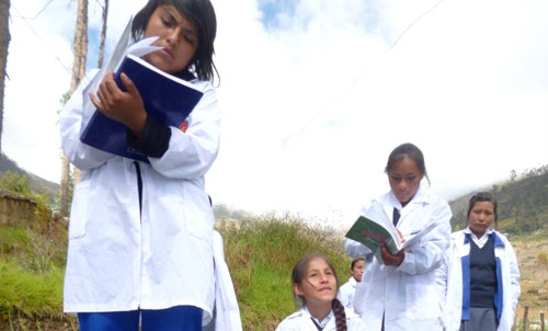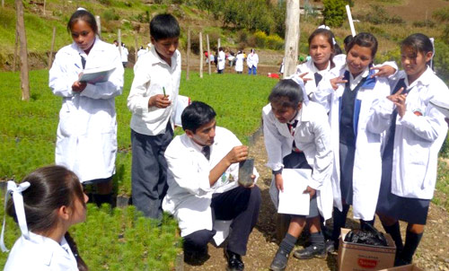 Colcabamba es un distrito que se encuentra en el valle de los ríos Apurímac, Ene y Mantaro (VRAEM). La zona tiene un clima cálido durante gran parte del año, lo cual hace posible la existencia de una gran diversidad ecológica, en la que destacan las plantas andinas nativas, ornamentales y medicinales y una gran variedad de árboles frutales. Las familias de las y los estudiantes de la IE se dedican principalmente a la agricultura (maíz, papa, frutas y café) y a la ganadería (crianza de animales menores) y cuentan con escasos recursos económicos. El docente inició el proyecto convencido de la importancia de la comprensión de la naturaleza y el biohuerto como laboratorio para el desarrollo de las competencias científicas y que, para generar aprendizajes, se debe crear un clima afectivo y colaborativo con los estudiantes.